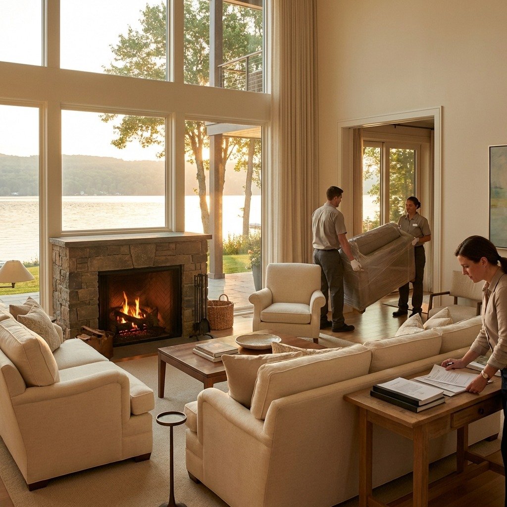 End-to-end management: pre-move survey, custom crating for art and wine, white-glove packing/unpacking, climate-controlled storage, and vehicle/boat transport with dock or boathouse access planning. Providers also coordinate utilities and smart-home setup, schedule designers/stagers, and liaise with your agent, attorney, and insurer so delivery aligns with closing and coverage dates.